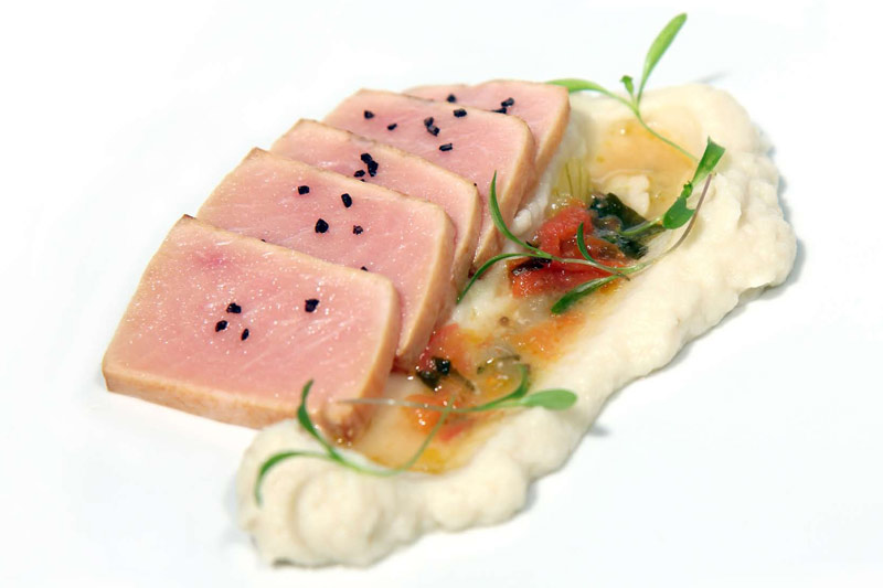 Espadarte Fumado a Quente com Ervas da Arrábida, Puré de Couve-flor e Molho de uma Caldeirada